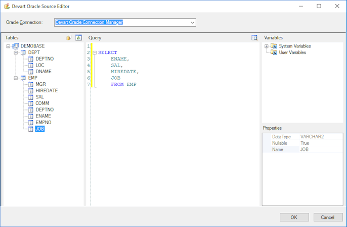 The components offer several advanced technical features that enhance Oracle data integration workflows. The Oracle Connection Manager supports both Direct connection mode, which eliminates the need for Oracle Client software, and OCI mode with flexible configuration options for specialized requirements. The Oracle Source component includes an integrated editor with comprehensive database object visualization, drag-and-drop query building functionality, and real-time data preview capabilities to validate query results. For data loading operations, the Oracle Destination component leverages high-performance techniques including Direct Path interface in OCI mode and Array Binding in Direct mode to facilitate efficient bulk data insertion. The Oracle Lookup component implements sophisticated optimization strategies, utilizing SELECT statements that process multiple rows simultaneously and caching returned results to minimize server round-trips.