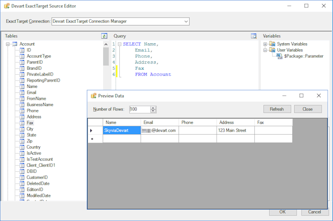 Devart's SSIS Data Flow Components for Salesforce Marketing Cloud (formerly ExactTarget) allow users to seamlessly integrate Salesforce Marketing Cloud data with other cloud applications and databases. These optimized SSIS components include a Salesforce Marketing Cloud Source, Salesforce Marketing Cloud Destination, and Salesforce Marketing Cloud Lookup, along with a dedicated Connection Manager.