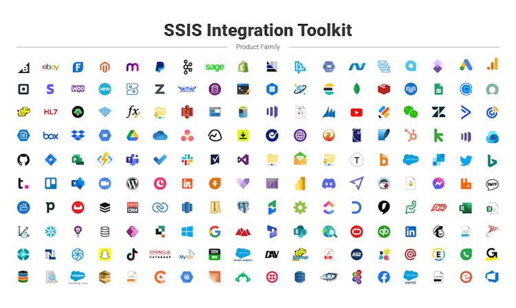 SSIS Integration Toolkit is a full suite of integration solutions with more than 300 individual data integration tools for connectivity and productivity. These data integration solutions allow developers to take advantage of the flexibility and power of the SSIS ETL engine to integrate virtually any data source or destination.