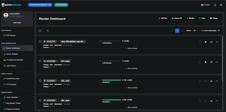 Super Renders Farm’s user interface
