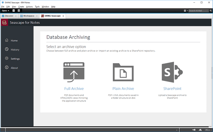 SWING Seascape for Notes is a data management software designed to help businesses in the IT sector extract, migrate, and archive Lotus Notes databases. Administrators can create portable archives and retain original document layout including links and metadata on a unified interface.