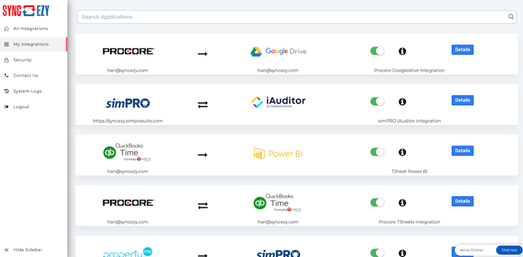 We provide deep, custom integrations between many popular apps. Some of the apps we connect are programs like simPRO, Procore, Quickbooks Time (TSheets), Zoho CRM, Infusionsoft, Salesforce, Asana, Mailchimp, Encircle, Deputy, Dropbox, Google Drive, OneDrive, SharePoint, HiPages, HubSpot, Pipedrive, Power BI, Xero, iAuditor, CorrigoPro, Rapid, Dashpivot, ServiceM8, Smartbots.