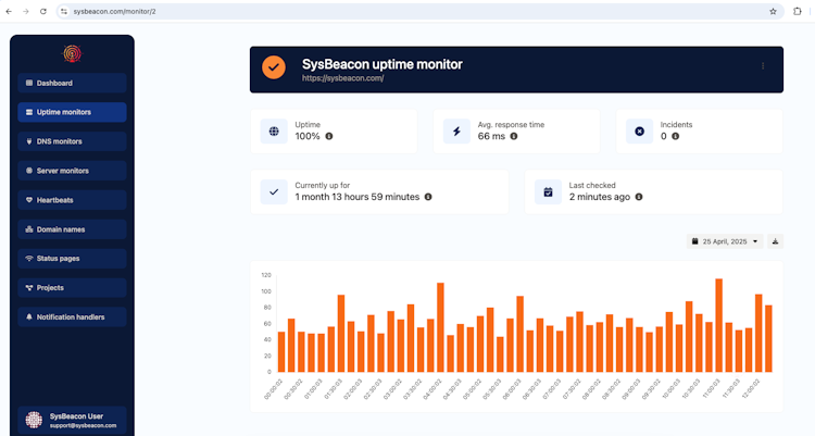 SysBeacon is a comprehensive uptime monitoring and status page solution designed to help IT departments, web developers, and system administrators track the availability and performance of websites, servers, and other critical infrastructure. It offers a platform for monitoring and reporting on the health of online assets.