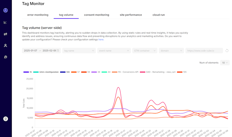 Users can monitor all tags, across every browser and device. Tag Monitor offers features to maintain the seamless operation of critical systems. It monitors both client-side and server-side tag environments, including Cloud Run instances.