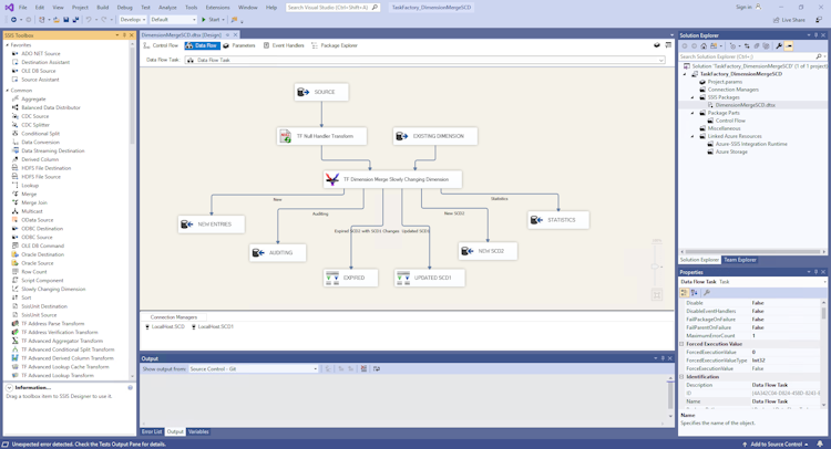 Task Factory's SSIS Email Source Adapter filters emails based on sender, subject, date, body or priority and supports Internet Message Access Protocol (IMAP), Post Office Protocol (POP3), and more. Data Validation Transform collects and verifies phone numbers, email addresses, and Social Security numbers (SSN), among other information from various sources. Businesses can also manage and load data warehouses and utilize the Task Factory Azure Data Factory edition to run SSIS packages in the cloud.