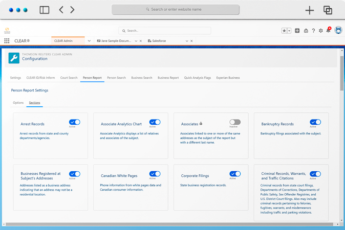 Thomson Reuters CLEAR integration connects your Salesforce CRM to investigative services on the market. Users can gain access to a collection of comprehensive public and proprietary records and sophisticated analytics within a unified environment. Users can easily access essential background information, simplify and speed up the investigative process, and get tools to make accurate decisions.