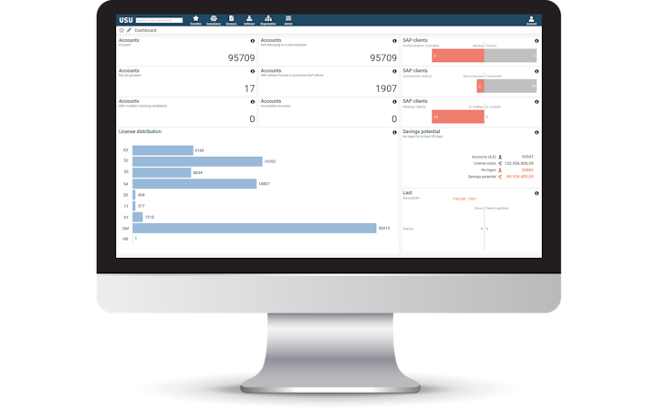 The USU SAM system is designed to optimize costs for web-based services by providing real-time data for strategic purchasing decisions. Businesses can manage all SaaS assets on a single platform to make inventory tracking and software distribution easier. The platform collects information from data centers and cloud services to calculate software license needs. It also consolidates data extracted from software and ensures cloud services are used correctly. The platform has access to software vendors and helps identify gaps, potential savings, and vulnerabilities from the collected data.