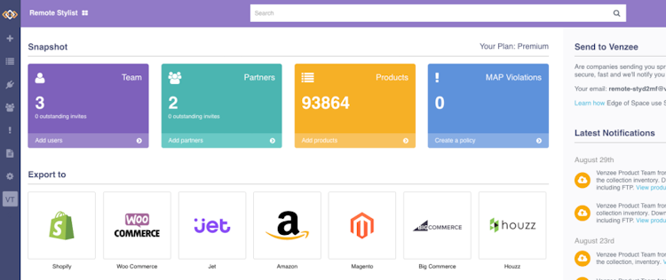 Venzee’s plug and play tool, Autopilot, allows automatic update of product listings after importing information from emails, file uploads, or cloud storages. With the web application, Studio, supervisors can view lists of attributes across product categories, edit categories in real-time, and grant role-based access permission to team members.