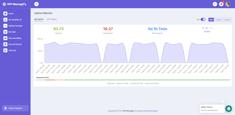 Monitor your sites 24/7 for uptime, downtime, and response times and receive instant alerts when issues occur — letting you react fast and minimize downtime.