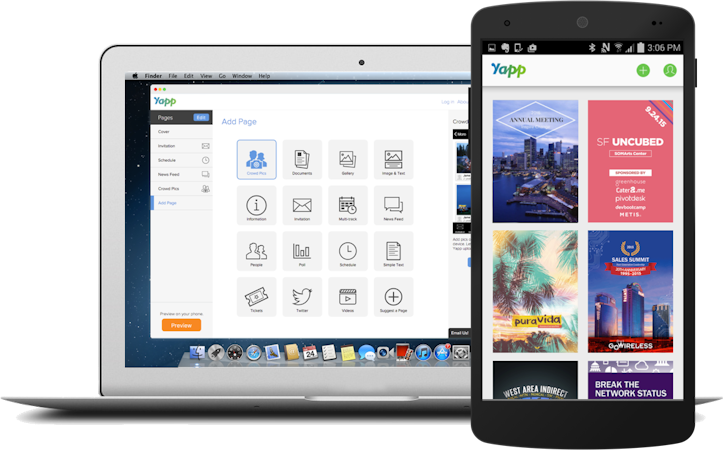Yapp is an award-winning mobile app builder that lets you create iOS or Android apps for events, internal communications, communities, and teams - no coding knowledge required. With Yapp, you can easily build a full-featured mobile app without the time, cost, and headache of having to develop a standalone app from scratch. Event organizers and team managers can use our platform to build an engaging app in a single afternoon - no project management, no designers, and no development agency needed - you can do it quickly and easily yourself! And if you do need help, our stellar, global support team is standing by. Whether you're looking to power your events, onboard and train new team members, or simply connect with your community, we make it easy to build your app in minutes. For event apps: In-app social feed Push notifications Rich digital schedules Digital venue maps Promote event sponsors and partners Attendee polling and feedback Event analytics / engagement tracking Privacy settings Offline viewing Unlimited device installs For internal communications: In-app social feed Store digital training materials, sales enablement documents, and more Send team announcements and updates with instant push notifications Help team members connect with each other: share contact information, bio, and picture Integrations YouTube Vimeo Eventbrite Twitter Facebook SSO 1Password Yapp is trusted by thousands of companies around the world including Anheuser-Busch, Capital One, Too Faced, Lockheed Martin, YMCA, American Lung Association, Pfizer, Toyota, SAS, The Salvation Army, Virgin, Microsoft, and Top Golf.
