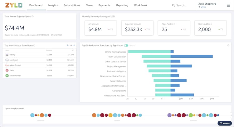 Zylo is a SaaS management solution designed to help businesses manage their entire SaaS footprint, including licenses, renewals, and utilization. The platform enables users to discover their full SaaS inventory regardless of each app's acquisition source in a single system of record, including automated insights, alerts, reports, and workflows for license management and optimization.