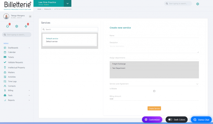 Billetterie is a cloud-based legal case management software that helps businesses in IT, law, and other industries streamline service operations related to assigning service levels, tracking tickets, and monitoring agent performance. It lets sales representatives handle service requests, collaborate with clients, and analyze service management trends from a unified platform.