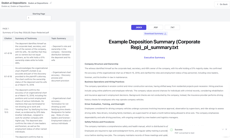 Dodonai is an AI-powered document processing platform engineered for legal professionals and medical record reviewers who manage complex litigation documentation. The software automates the analysis and summarization of depositions, medical records and discovery materials, converting unstructured documents into structured, actionable outputs within minutes. The platform is built on HIPAA compliance and SOC two certification as foundational requirements and delivers secure, end-to-end encrypted processing with isolated per-client workspaces and zero data retention guarantees through its language model partnerships.