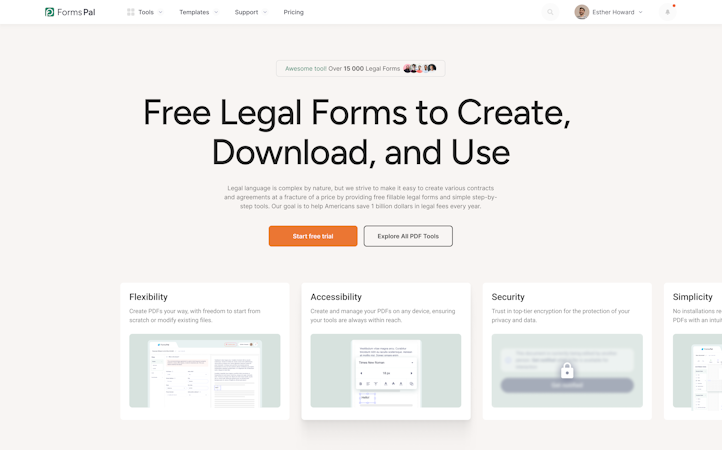 FormsPal is a web based legal document creation and management platform that provides direct access to fillable forms, templates, and a custom document builder tool. The platform serves individuals, small businesses, real estate professionals and organizations requiring standardized legal documentation for personal, business, real estate, estate planning and financial matters. The platform offers state specific forms covering all fifty states to ensure compliance with jurisdictional requirements for various legal documents including lease agreements, powers of attorney, wills, business formation documents and employment contracts. The software presents an alternative to attorney prepared documents while maintaining legal validity and consistent formatting standards.