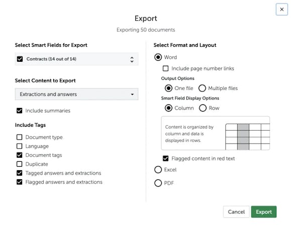 Kira's adaptive workflows and export capabilities enable legal professionals to customize reports, export extracted information with or without summaries, and integrate the software's functionality using its API. By leveraging Kira to accelerate contract reviews while maintaining high accuracy, firms can deliver more valuable and comprehensive legal advice and services, such as additional due diligence and more comprehensive contract analysis. Kira's integration with an OpenAI model further enhances the software's summarization capabilities, providing easy-to-read AI-generated summaries of key contract provisions.