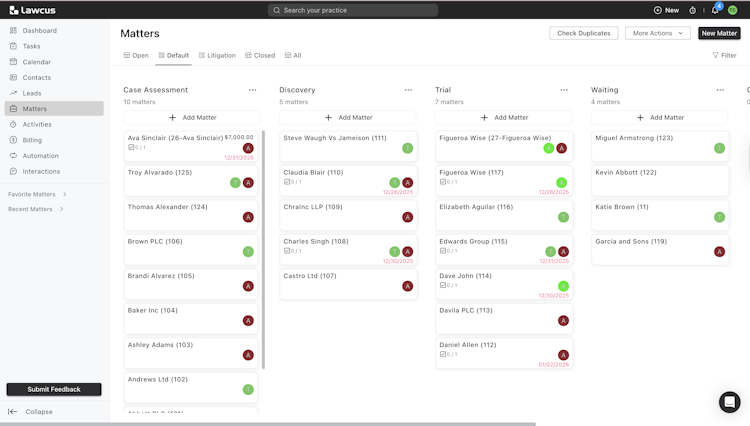 Lawcus is a comprehensive legal practice management software designed to streamline operations for law firms of all sizes. The platform integrates case management, client intake, and no-code automation capabilities into a unified system. It features a Kanban-style interface that provides attorneys with a bird's-eye view of all matters, allowing them to quickly identify priorities and track case progression. Lawcus incorporates bank-grade security measures, including 256-bit AES encryption and Amazon AWS cloud infrastructure, ensuring that sensitive client information remains protected at all times.