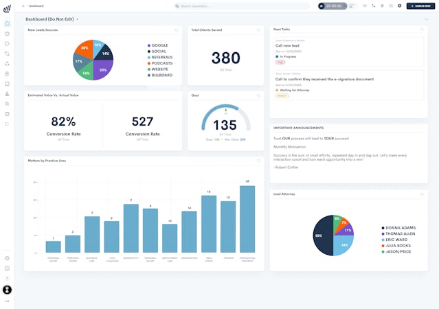 Lawmatics brings together client intake, CRM, marketing automation, and performance analytics in one intuitive platform designed specifically for law firms.