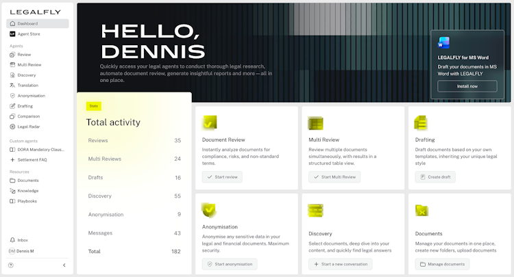 The platform offers a suite of features that support core legal workflows. Contract review and negotiation capabilities allow legal teams to apply custom playbooks and fallback positions, identify risks, generate redlines and produce negotiation-ready summaries consistently across deals. Document drafting transforms contracts into smart templates within Microsoft Word, auto-fills key details, applies clause logic and ensures each draft aligns with established playbooks. Legal research and advice tools generate guidance grounded in internal documents and approved sources, complete with citations and traceability. Regulatory monitoring delivers tailored updates across jurisdictions. Due diligence tools accelerate review of complex document sets by extracting key terms, flagging inconsistencies and producing structured summaries backed by source evidence. The upcoming Agent Studio capability enables definition of custom workflows, standards and approvals to automate legal work according to organizational requirements.