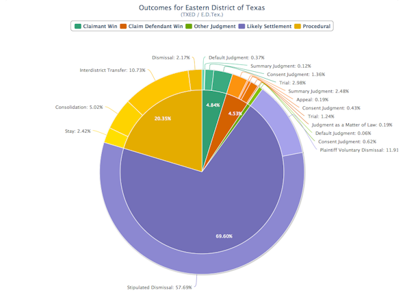 Lex Machina allows businesses to analyze litigation data for cases across the Patent Trial and Appeal Board (PTAB), district courts, and International Trade Commission (ITC). The case management platform lets law firms monitor judges' responses to specific cases, utilize the motion metrics report to view grant or deny rates, and calculate the potential time taken for trial, termination, or permanent injunction. Businesses can use the solution to compare law firms and gain insights into trends, case termination rates or damage incurred through charts or graphs. Using party group editor and case damage analytics, lawyers can evaluate stakeholders' legal status and the number of lawsuits or damages involved.
