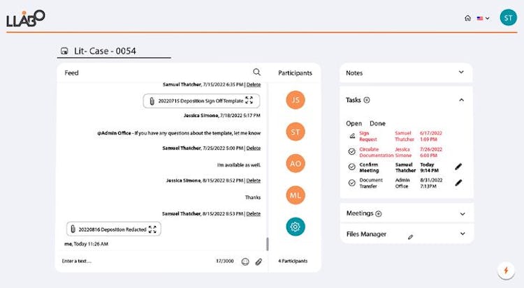 Llabo has looked at how people communicate across popular social platforms and designed a platform that encourages communication while enabling remote co-working, all at once. If managers need to address a litigation matter, simply open a channel for the litigation team. If teams need to streamline client billing, just open a channel between billing attorneys and the accounting team. By putting simplicity first, Llabo has built a legal solution that overcomes the everyday challenges of interoperability and offers a seamless solution for case management collaboration.