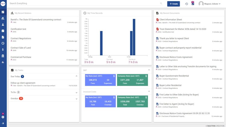We have a single place to manage our documents, invoicing, trust accounting, CRM and reporting. And it doesn't cost us the earth or require excessive IT help.