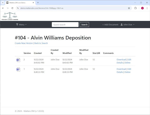 The software's flexibility allows users to host the application in-house or in the cloud, providing full control over document storage. Matters DM's versioning capabilities enable the tracking of changes to documents over time, with unlimited versions available. The application's accessibility features allow users to access their documents from a variety of devices, including desktops, laptops, tablets, and smartphones.