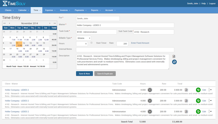 TimeSolv Legal Billing’s user interface
