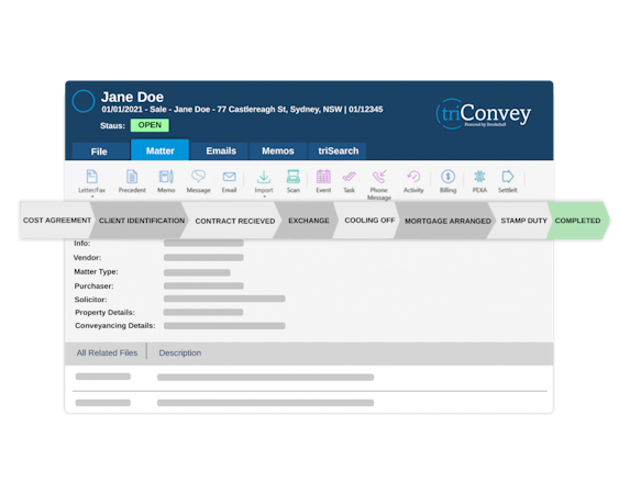 triConvey is a powerful conveyancing practice management software that includes all the tools required to conduct matters from end-to-end in one platform. It helps businesses manage matters, tasks, workflows, accounting, billing, and more.