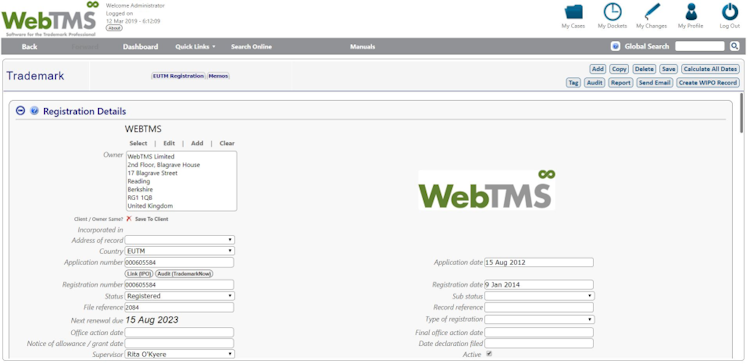 WebTMS is a comprehensive and intuitive IP management platform that supports the efficient handling of all IP matters. The automatic diary and workflow tools ensure no deadlines are missed. Document management and collaboration functionalities along with e-discovery capabilities offer you high visibility into IP-related tasks.