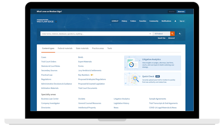 Westlaw Edge’s user interface