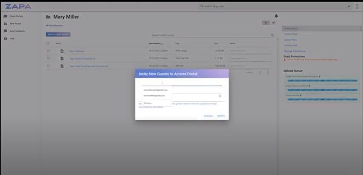 Zapa Client Portals allows enterprises to establish a file-sharing portal to share files and documents with internal and external stakeholders. It offers a host of features such as custom emails, activity audits, file filtering, centralized data storage, multiple portals, password-protected access, and more. The application includes administration management functionality, which enables account managers to add, remove, or edit team members via a unified dashboard.