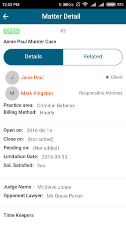 A modern Litigation Management System Software which helps corporate legal departments streamline their daily tasks and with built-in automation helps professional increase their productivity. Users can manage court matters, legal notices, court hearings, cause-lists, orders & judgements, case statuses, legal document management, legal spend management & more.
