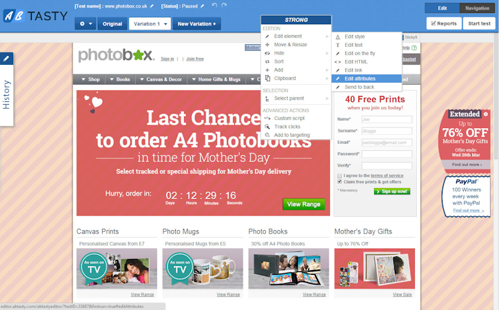 No technical knowledge is required to use AB Tasty thanks to the graphic editor, which lets marketing teams directly modify their site's pages and create different versions to test.