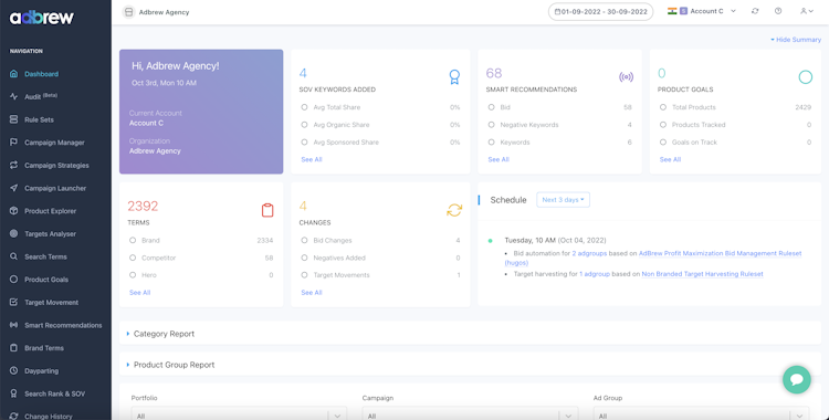 Adbrew has more to offer including multi-user support, in-app help, and is available globally. It empowers digital marketing agencies, brands, sellers and aggregators to automate and enhance their Amazon PPC management strategies. Visit www.adbrew.io or email us at hello@adbrew.io to sign up for a trial or schedule a demo today.