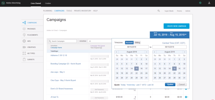Adobe Advertising Cloud’s user interface