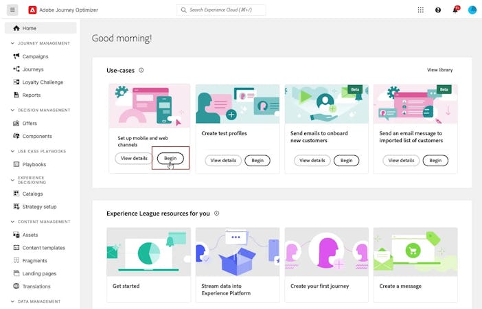 Adobe Journey Optimizer is a user-friendly customer engagement solution, enabling brands to orchestrate and deliver personalized customer engagement across all channels — including email, web, app, mobile, and more — in the moments that matter to your customers.