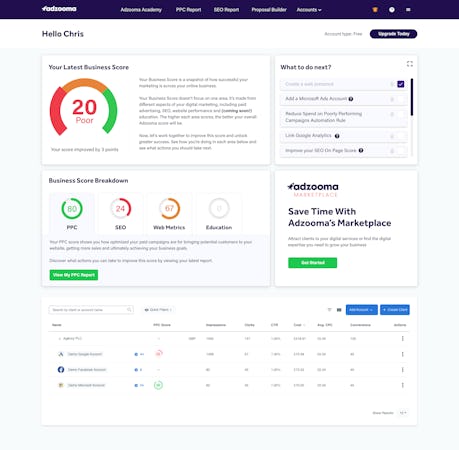 Packed with all the tools you need to grow your business, Adzooma gives you a crystal clear view of where your online marketing is right now, then provides personalized checklists to help you drive business growth.