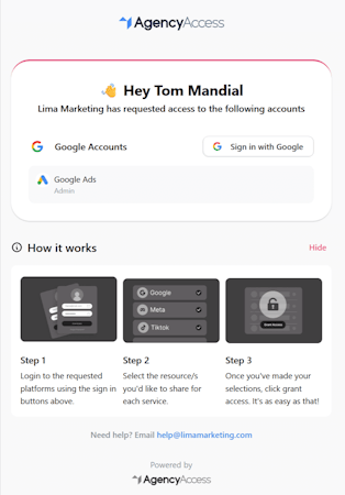 AgencyAccess is a client onboarding platform designed for marketing agencies that require streamlined management of client account permissions. The system helps businesses consolidate access requests for advertising, analytics and ecommerce platforms into a unified workflow. AgencyAccess focuses on digital marketing agencies handling multiple client accounts across diverse business applications.