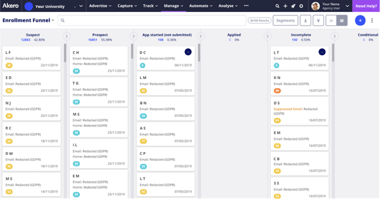 Professionals can utilize the drag-and-drop form editor to design forms and embed them into the websites. Akero's key features include GDPR compliance review, benchmarking, communication management, form analytics, A/B testing, and more. The application also allows managers to create and manage event guest lists for open days or international events as well as track paid advertising campaigns, organic content, events, and emails in real-time.