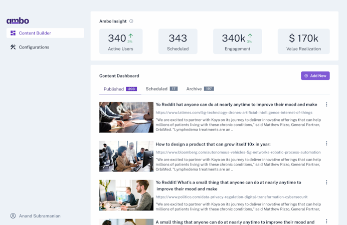 Ambo is an employee advocacy software platform that provides a managed content distribution workflow on LinkedIn for go-to-market teams. The system uses automated workflows to manage content sharing of company materials across employee LinkedIn profiles. Targeting marketing departments, sales teams, customer success representatives, and HR professionals, Ambo addresses the challenge of making corporate content accessible and shareable without extensive manual effort from team members. The platform transforms fragmented distribution processes into a structured, measurable system that enhances brand visibility through employee networks rather than relying solely on company pages or paid advertising.
