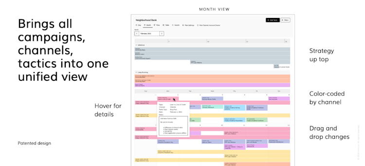 Annum integrates all initiatives, campaigns, channels, and tactics—both online and offline—into a single unified calendar view, allowing marketers to: