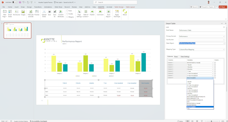 The platform's modular approach enables organizations to right-size the solution based on unique needs, offering an unmatched number of specialized modules. These include client presentations, factsheets, client reports, investment commentary, client portals, and more. Assette's industry-leading AI capabilities further enhance customization by automatically generating tailored investment commentary for each client using real account data, ensuring unparalleled precision and relevance.