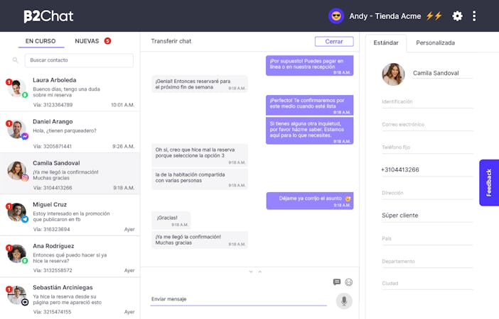 B2Chat is a Web App Platform designed to enable companies to unify their instant messaging channels including WhatsApp, Facebook Messenger, Instagram, Telegram, and LiveChat, and respond to their customers simultaneously with the amount of agents needed.