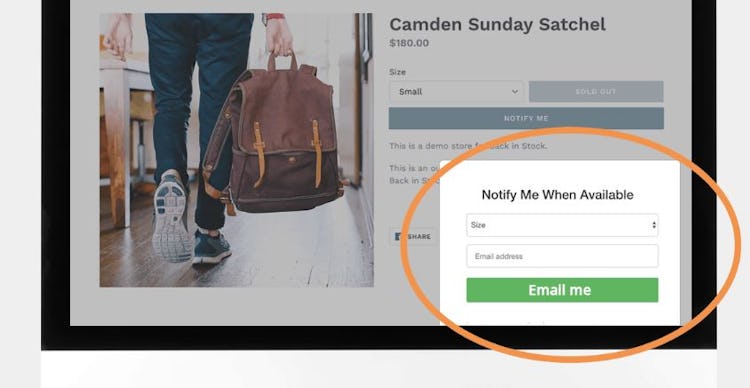 Back in Stock is a stock notification solution that allows customers to sign up for a notification alert via push notifications, SMS, or email when looking to buy out of stock product. Once the products are restocked, waiting customers are notified instantly to bring them back to the store and complete their purchase.