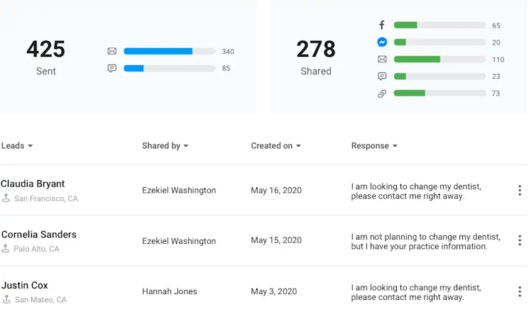 Birdeye Referrals' reporting capabilities let administrators track referrals, clicks, shares, and leads from within a unified platform. Customers can refer businesses via text, email, and social media channels according to requirements. It also helps teams receive notifications about new referrals and use the inbox to communicate with clients via messages.