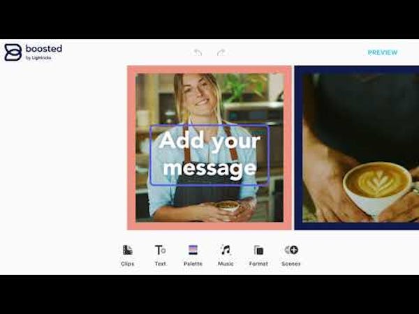Boosted is a marketing video-making software designed to help businesses and professionals create advertisements with stock clips using custom logos, text, music, and more. It offers built-in social media best practices, letting users turn their followers into customers.