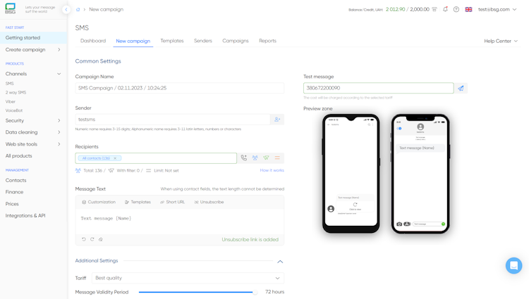 BSG is a cloud-based SMS marketing platform that provides messaging services, authentication tools, and mobile number intelligence with the highest security standards. With BSG, you can effortlessly talk to customers anywhere in the world on any global channel such as SMS, Viber, and Voice Bot. Its unique technology suite enables brands and enterprises to get connected with millions of customers at low costs and provides real-time customer engagement.