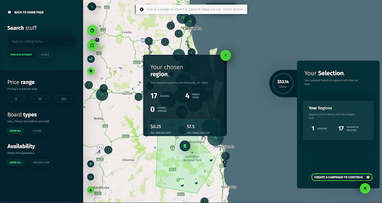 - Hand-pick the billboards or select a whole region by drawing on the map.