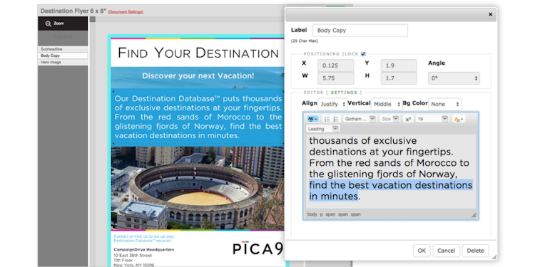CampaignDrive provides organizations with a self-service portal, which allows partners to access and customize marketing materials in accordance with the brand guidelines. Managers can configure workflows and manage users’ access permissions through Security Assertion Markup Language (SAML) integration. It also lets users provide local marketers with preconfigured templates and analyze campaign performance through actionable analytics.