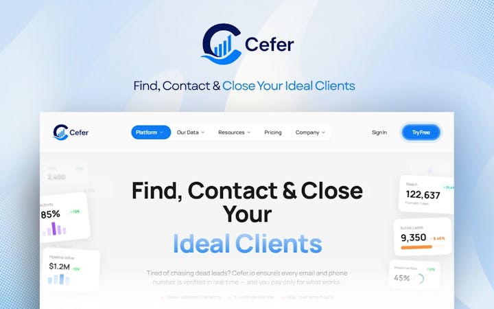 Cefer is a B2B sales intelligence and lead generation platform that provides organizations with access to verified contact data and prospecting tools. The platform enables identification, validation, and engagement of potential business clients through a database of over three hundred million verified contacts spanning more than fifty countries and five hundred industries. Cefer is designed for revenue teams, sales development representatives, marketing professionals, and business development organizations that require accurate B2B contact information to support outbound prospecting and pipeline generation activities. The solution addresses the need to reduce wasted outreach efforts and improve email deliverability through verified data.